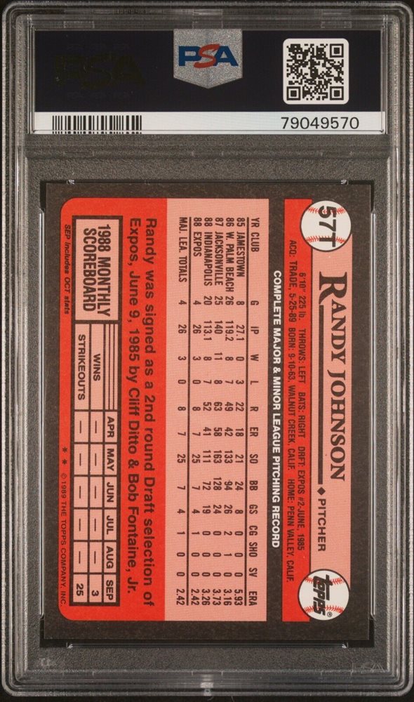 1989 TOPPS TRADED TIFFANY SET #57T - RANDY JOHNSON RC - PSA 6 EX-MT GRADED 9/23