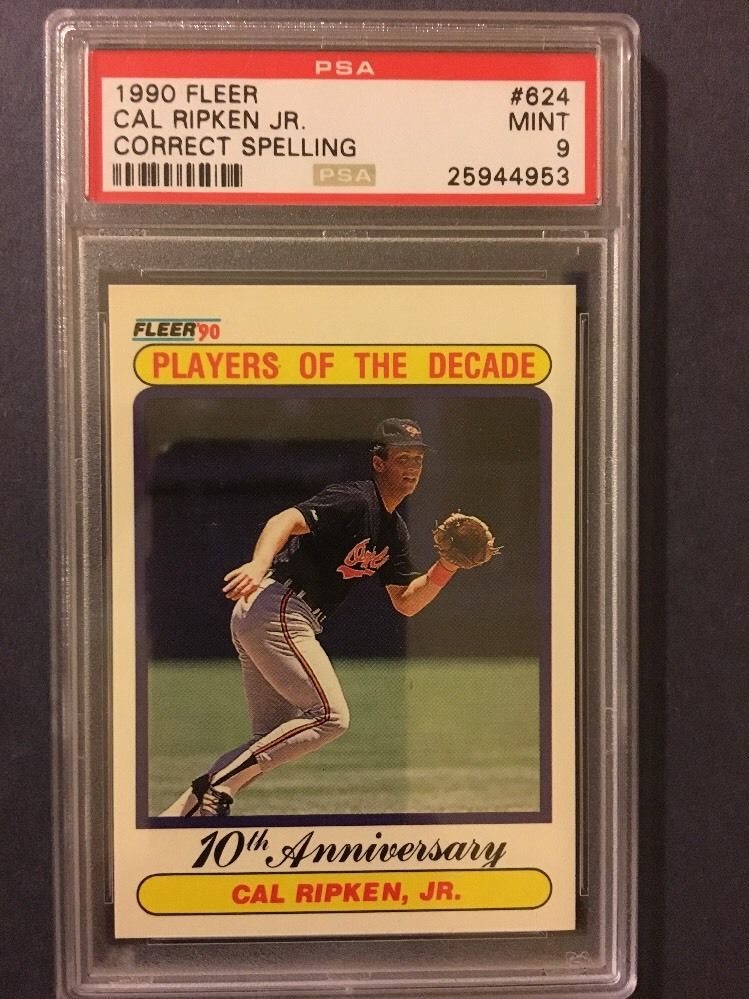 1990 Fleer #624 Cal Ripken Jr. Correct Spelling Players Of The Decade --- PSA 9