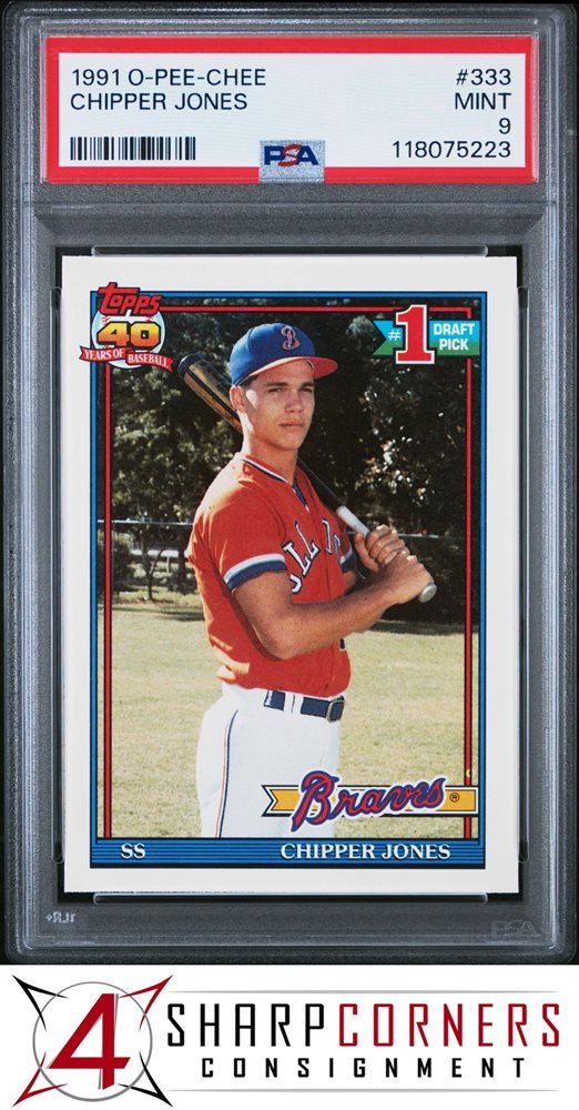 1991 O-PEE-CHEE #333 CHIPPER JONES RC HOF PSA 9