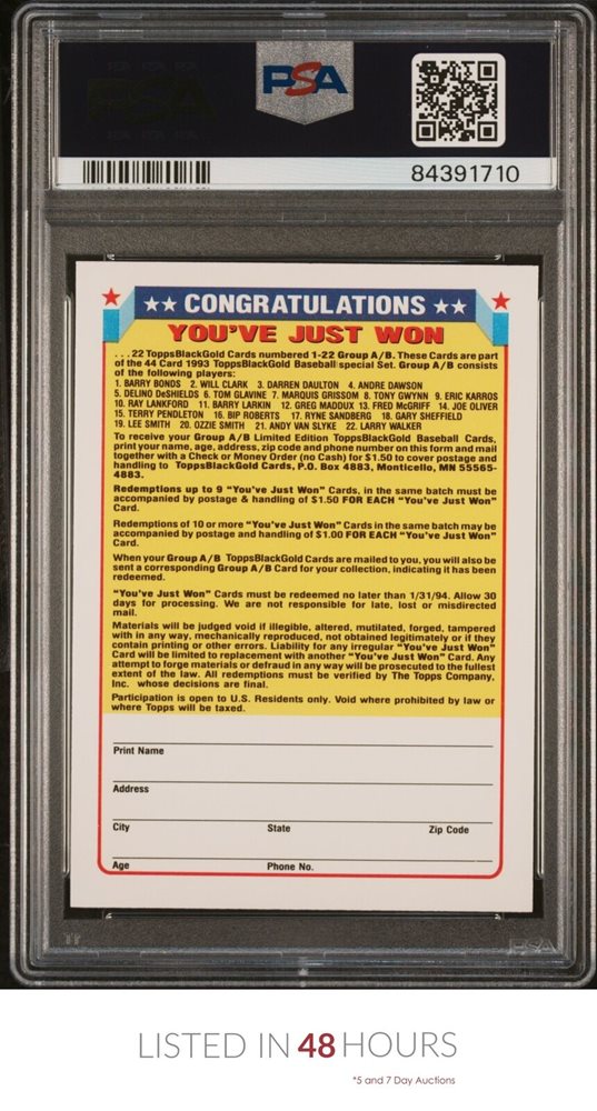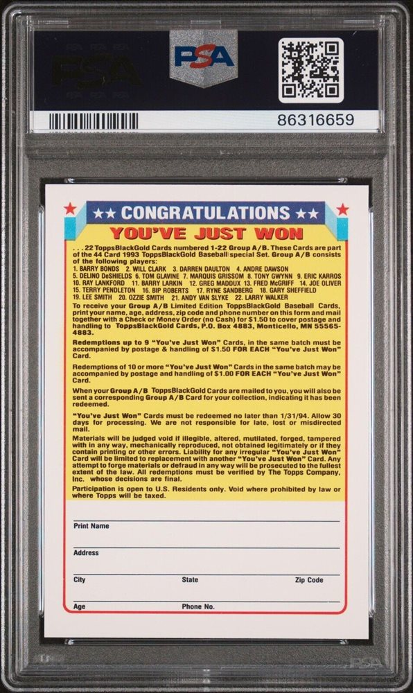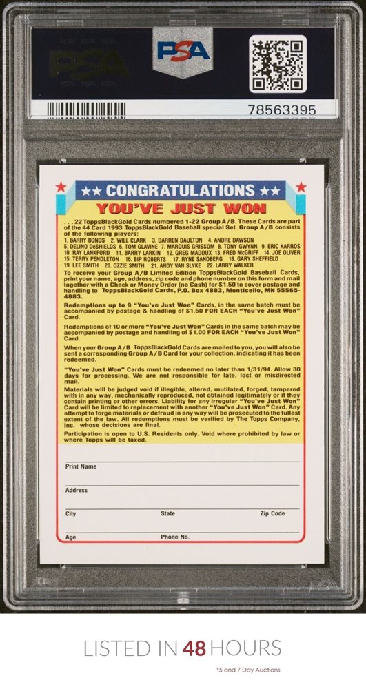 1993 TOPPS BLACK GOLD | REDEMPTION CARD