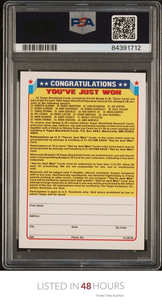 1993 TOPPS BLACK GOLD | REDEMPTION CARD