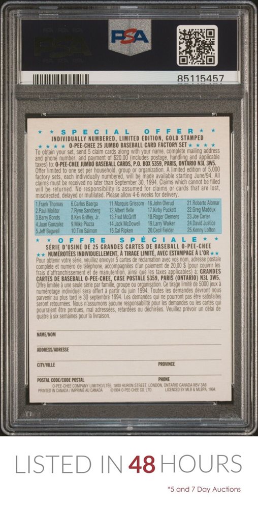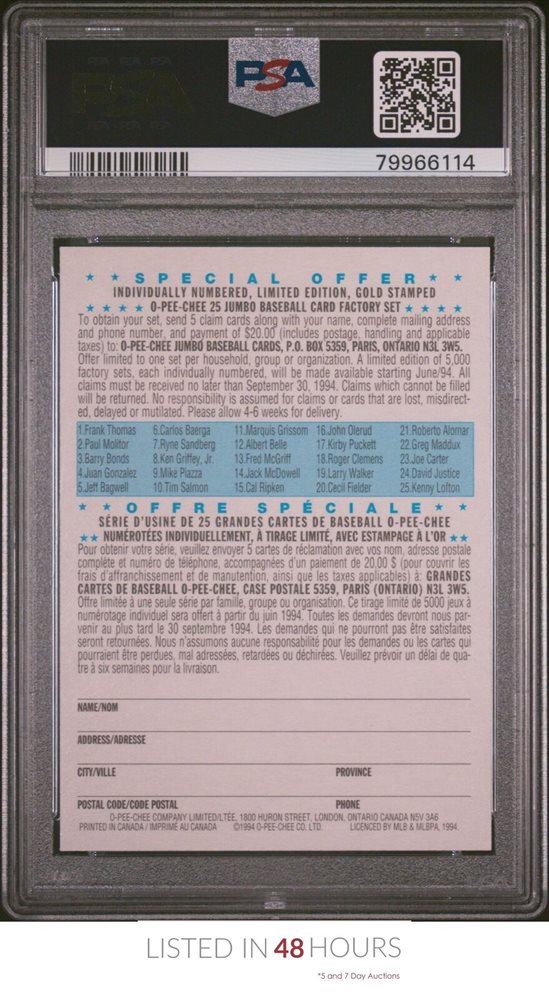 1994 O-PEE-CHEE ALL-STAR REDEMPTION CARD