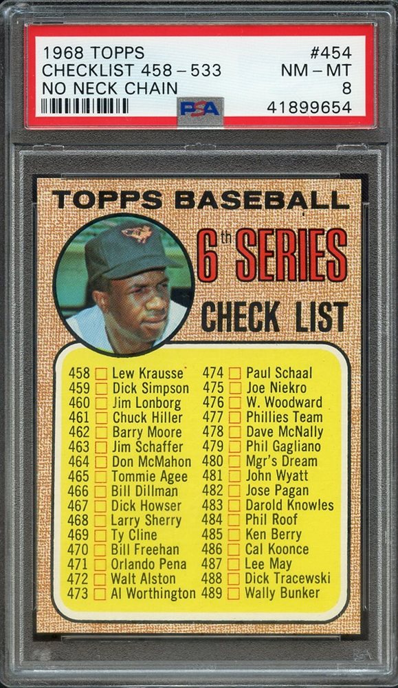 1968 TOPPS 454 CHECKLIST 458-533 NO NECK CHAIN PSA NM-MT 8