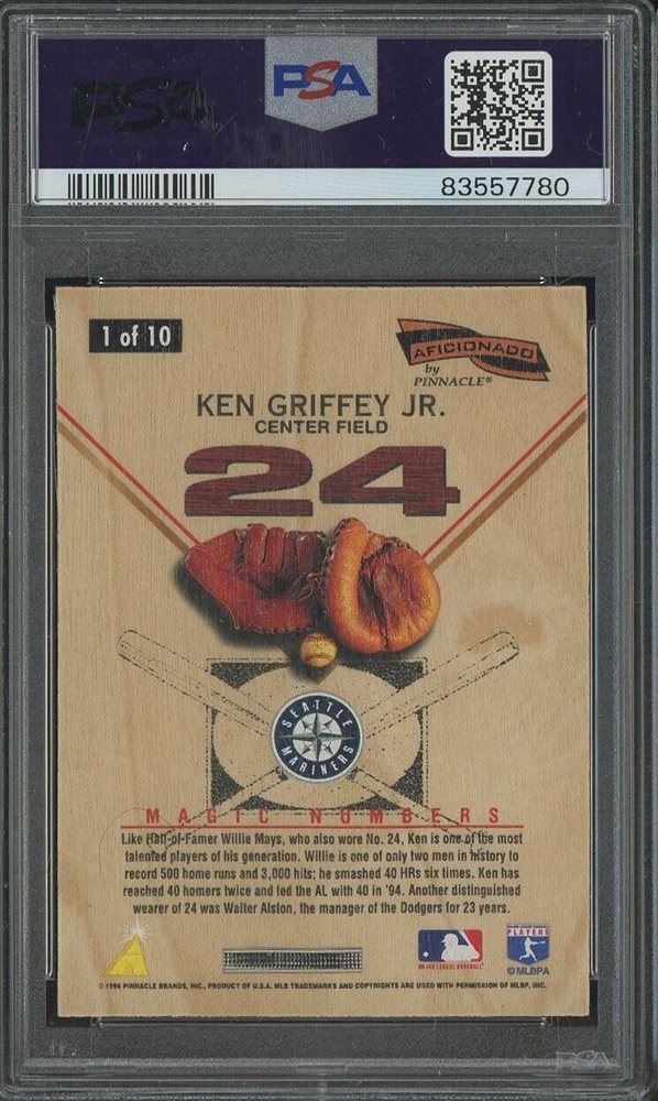 1996 Aficionado #1 Ken Griffey Jr. Magic Numbers PSA 10 Insert POP 33