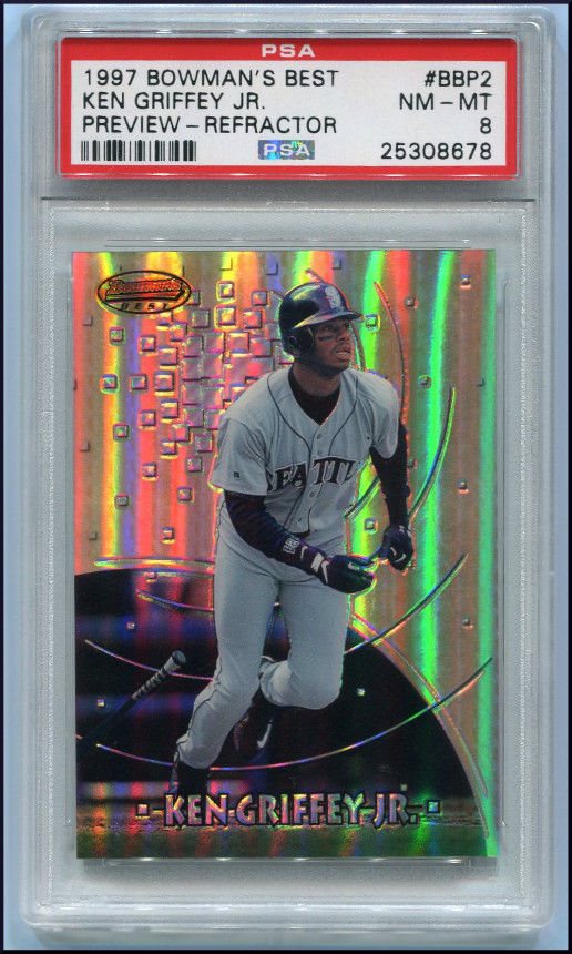 1997 BOWMAN’S BEST #BBP2 KEN GRIFFEY JR. PREVIEW REFRACTOR PSA 8