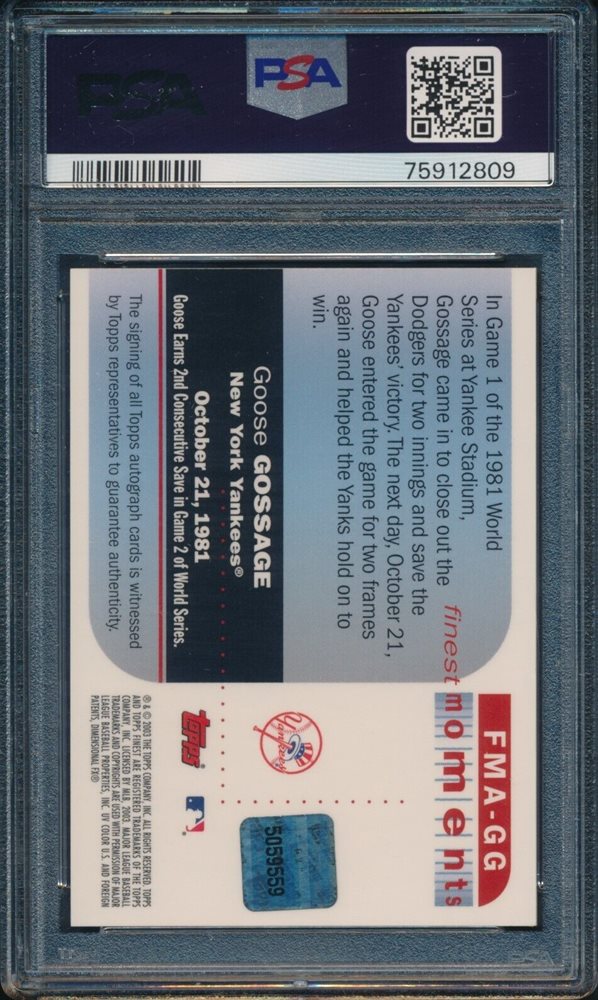 Auction Prices Realized Baseball Cards 2003 FINEST MOMENTS AUTOGRAPHS Goose Gossage
