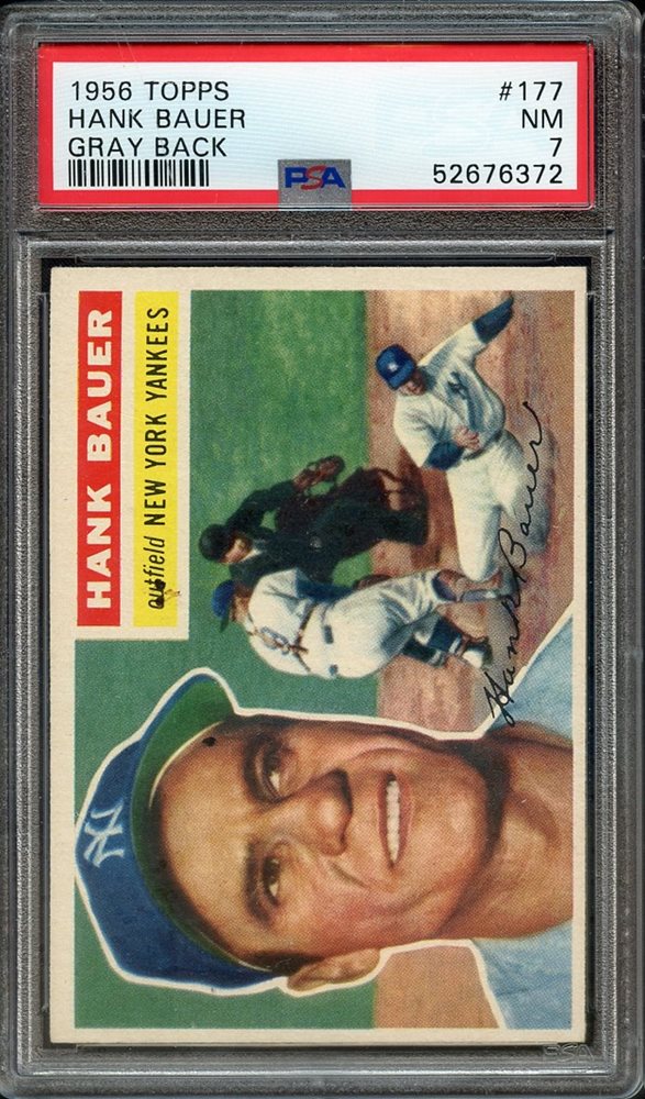 1956 TOPPS 177 HANK BAUER GRAY BACK PSA NM 7