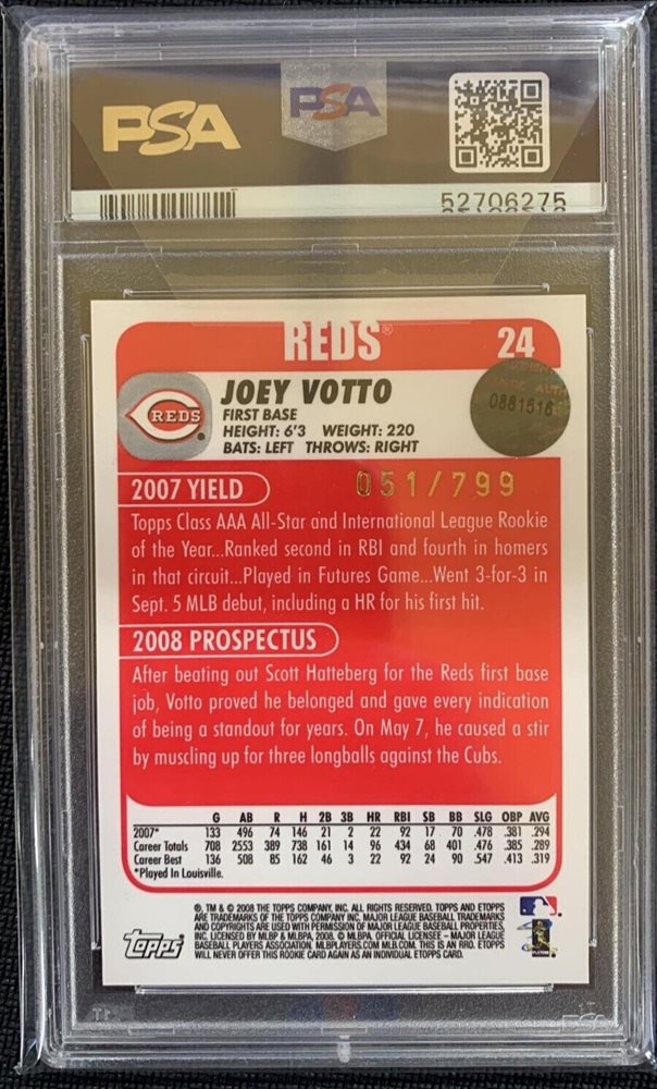 JOEY VOTTO - 2008 ETOPPS - #24 - ROOKIE - #/799 - PSA 9 MINT - REDS -