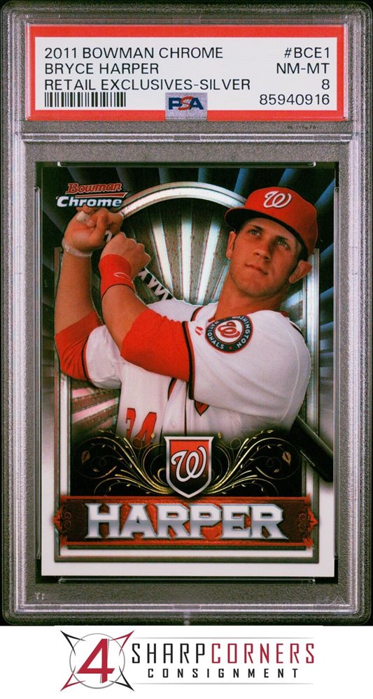 2011 BOWMAN CHROME RETAIL EXCLUSIVES SILVER #BCE1 BRYCE HARPER RC PSA 8