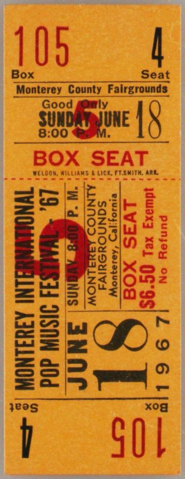 Auction Prices Realized Tickets 1967 MONTEREY INTERNATIONAL-FULL Pop Music Festival-8 Pm