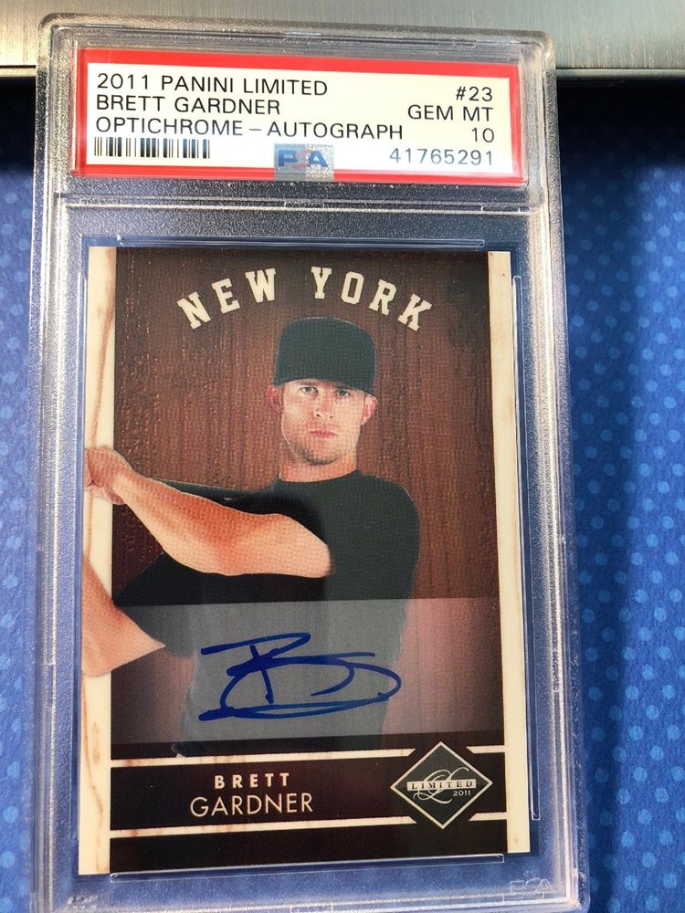 2011 Panini Limited Brett Gardner /399 Optichrome #23 Yankees AUTO RC PSA 10 Gem