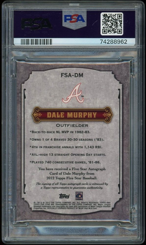 Auction Prices Realized Baseball Cards 2012 TOPPS FIVE STAR RETIRED PLAYER AUTOGRAPH Dale Murphy