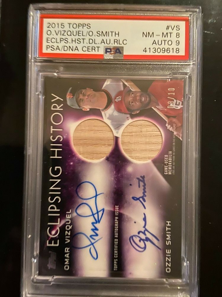 Auction Prices Realized Baseball Cards 2015 TOPPS ECLIPSING HISTORY DUAL AUTOGRAPHED RELICS Omar Vizquel / Ozzie Smith