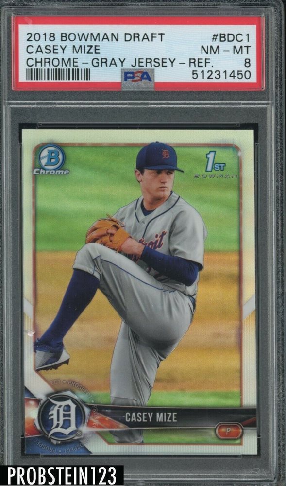 2018 Bowman Chrome Refractor Casey Mize Tigers Gray Jersey RC Rookie PSA 8