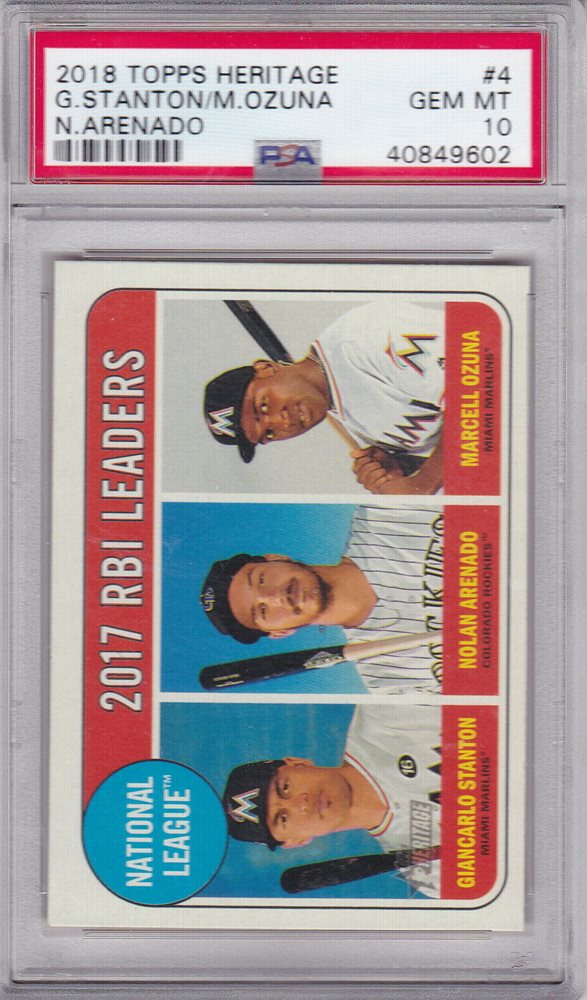 Auction Prices Realized Baseball Cards 2018 TOPPS HERITAGE Giancarlo Stanton / Marcell Ozuna / Nolan Arenado