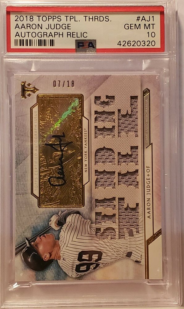 Auction Prices Realized Baseball Cards 2018 TOPPS TRIPLE THREADS AUTOGRAPH RELIC Aaron Judge