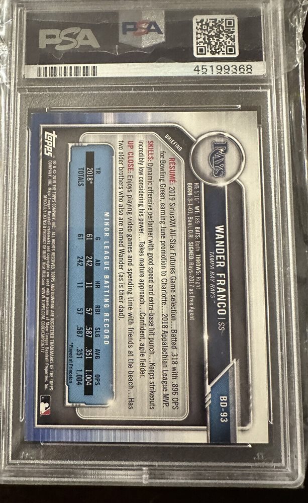 2019 Bowman Paper Prospects Sky Blue Wander Franco Rays RC Rookie /499 PSA 10