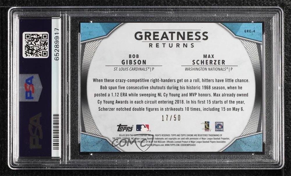 Auction Prices Realized Baseball Cards 2019 TOPPS CHROME GREATNESS RETURNS Bob Gibson / Max Scherzer