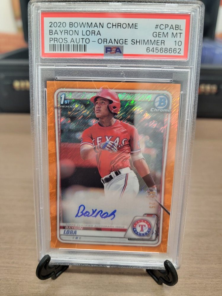 2020 Bowman Chrome Bayron Lora Orange Shimmer Auto PSA 10 Rangers Prospect 1st