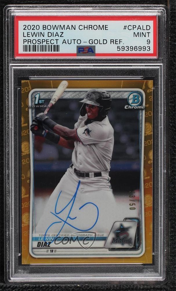 2020 Bowman Chrome Prospect Gold Refractor 33/50 Lewin Diaz PSA 9 MINT Auto