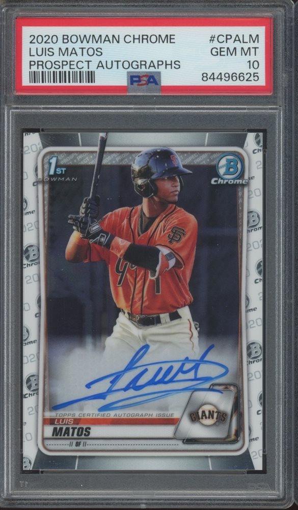 2020 Bowman Chrome Luis Matos Auto Autograph RC Rookie Gem Mint PSA 10