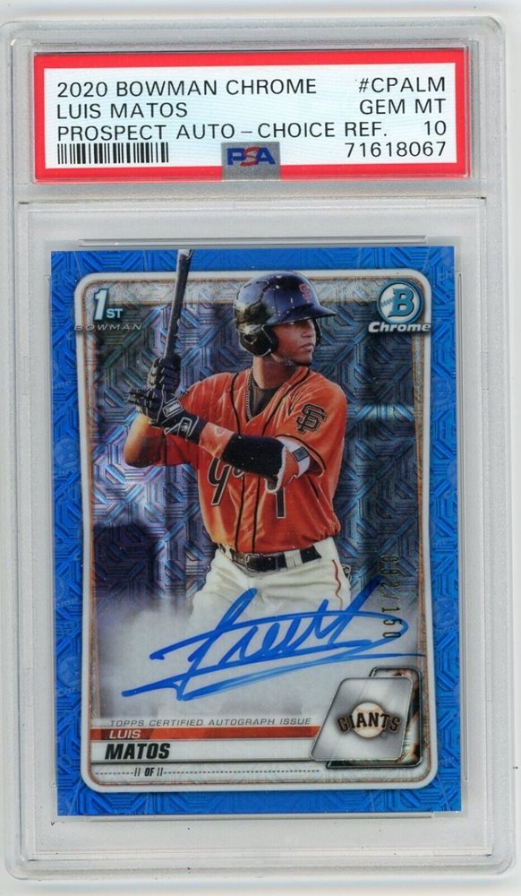 2020 Bowman Chrome Luis Matos Auto Blue Choice Refractor Giants /150 PSA 10