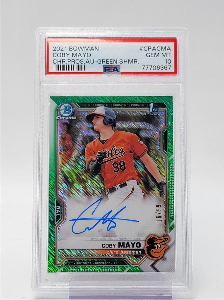 COBY MAYO 2021 BOWMAN CHROME 1ST GREEN SHIMMER AUTO /99 PSA 10 Q3551