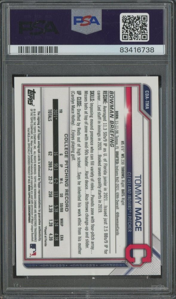 Auction Prices Realized Baseball Cards 2021 BOWMAN DRAFT CHROME DRAFT PICK AUTOGRAPHS Tommy Mace