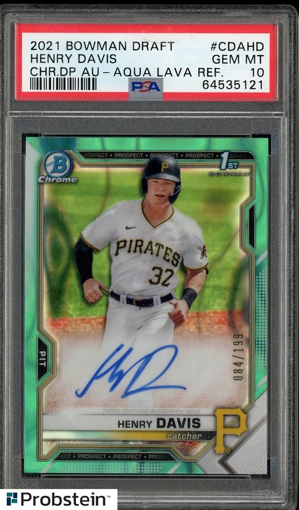 2021 Bowman Chrome Aqua Lava Refractor Henry Davis RC Rookie AUTO 84/199 PSA 10