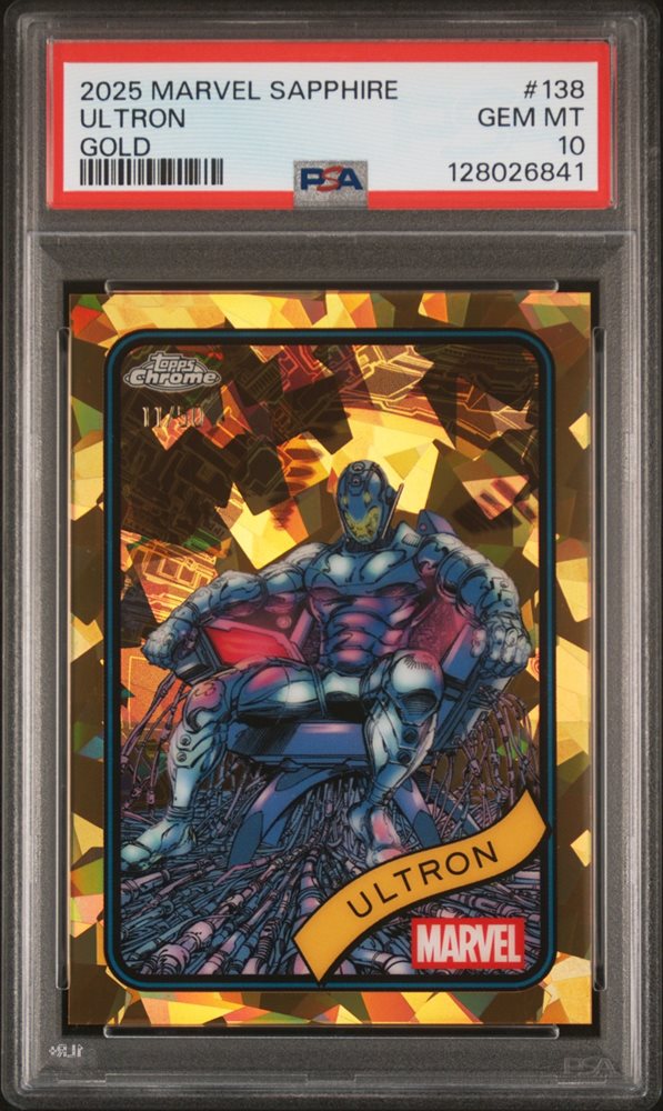 2025 TOPPS CHROME MARVEL SAPPHIRE EDITION GOLD #138 ULTRON 11/50 PSA 10