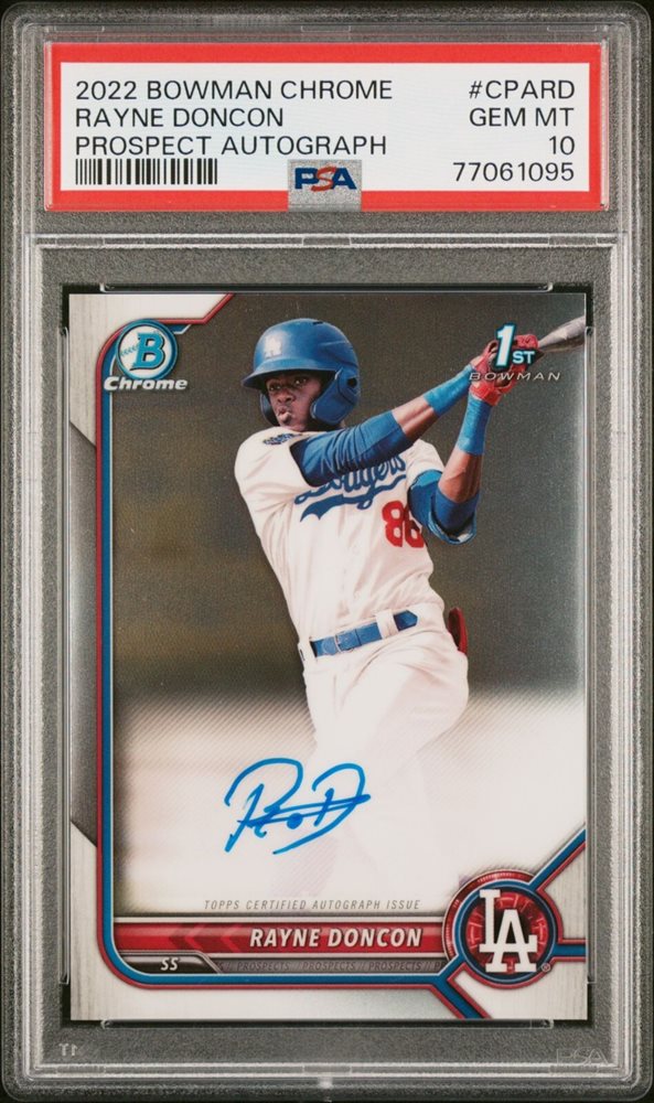 PSA 10! 2022 Bowman Chrome Rayne Doncon 1st Bowman Auto Dodgers PSA 10