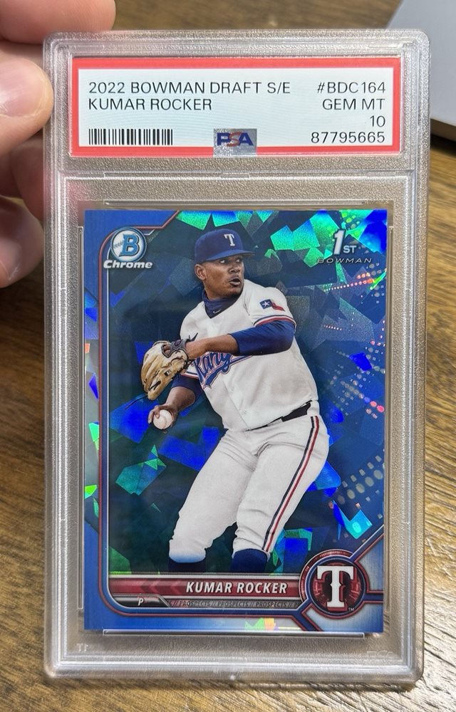 2022 Bowman Draft Chrome Sapphire Kumar Rocker 1st Rookie PSA 10