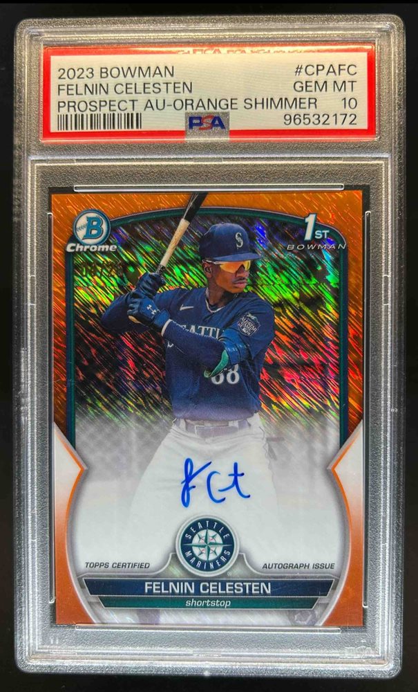 2023 Bowman Chrome Felnin Celesten Auto Shimmer Orange Refractor 1st #/25 PSA 10