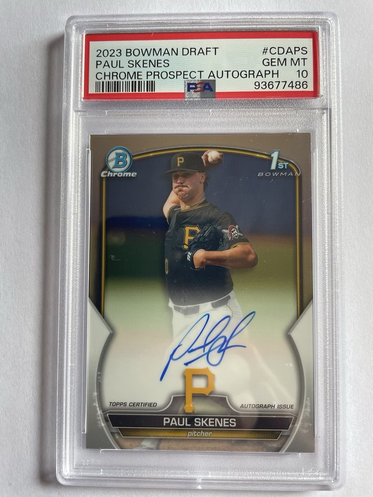 PAUL SKENES Autograph 2023 Bowman Draft 1st Chrome Prospect AUTO, PSA 10!!