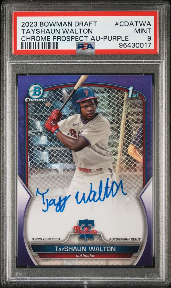 Tayshaun Walton 2023 Bowman Draft Chrome Pros. Autograph Purple 141/250 PSA 9