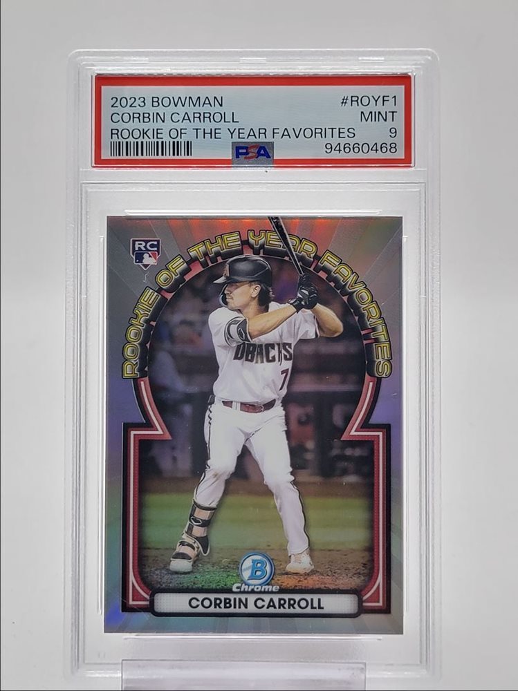 CORBIN CARROLL 2023 BOWMAN CHROME ROOKIE OF THE YEAR FAVORITES RC PSA 9 Q1568