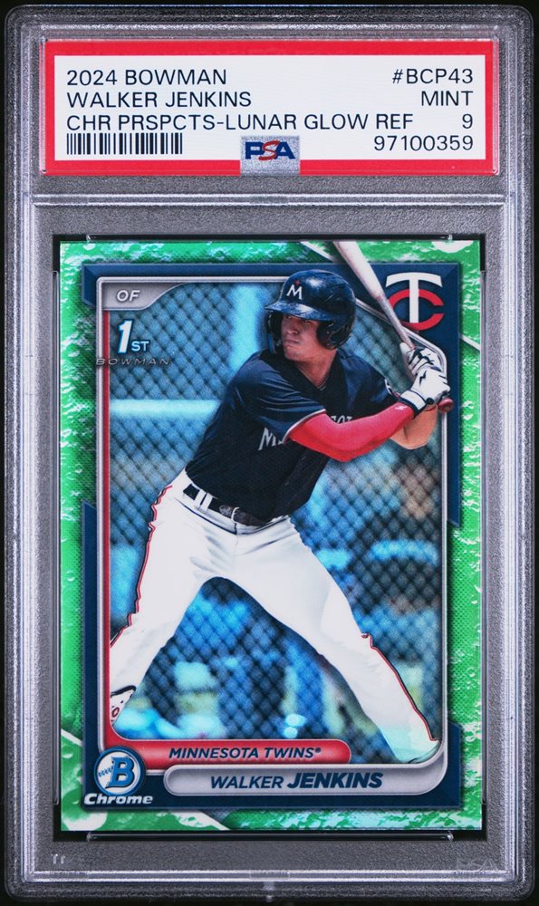 2024 BOWMAN CHROME PROSPECTS LUNAR GLOW REFRACTOR #BCP43 WALKER JENKINS PSA 9