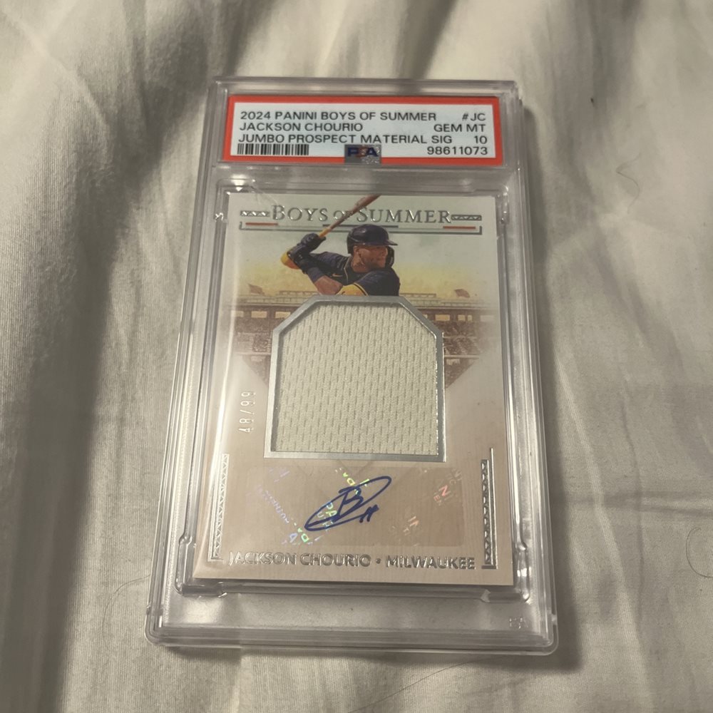 Auction Prices Realized Baseball Cards 2024 PANINI BOYS OF SUMMER JUMBO PROSPECT MATERIAL SIGNATURES Jackson Chourio