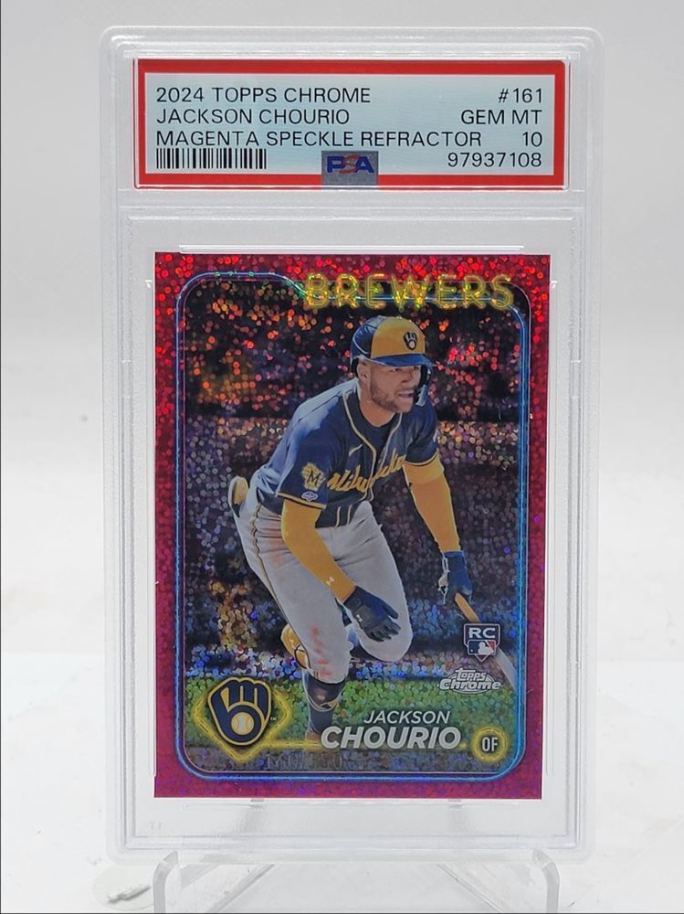 JACKSON CHOURIO 2024 TOPPS CHROME ROOKIE MAGENTA SPECKLE RC /350 PSA 10 Q2052