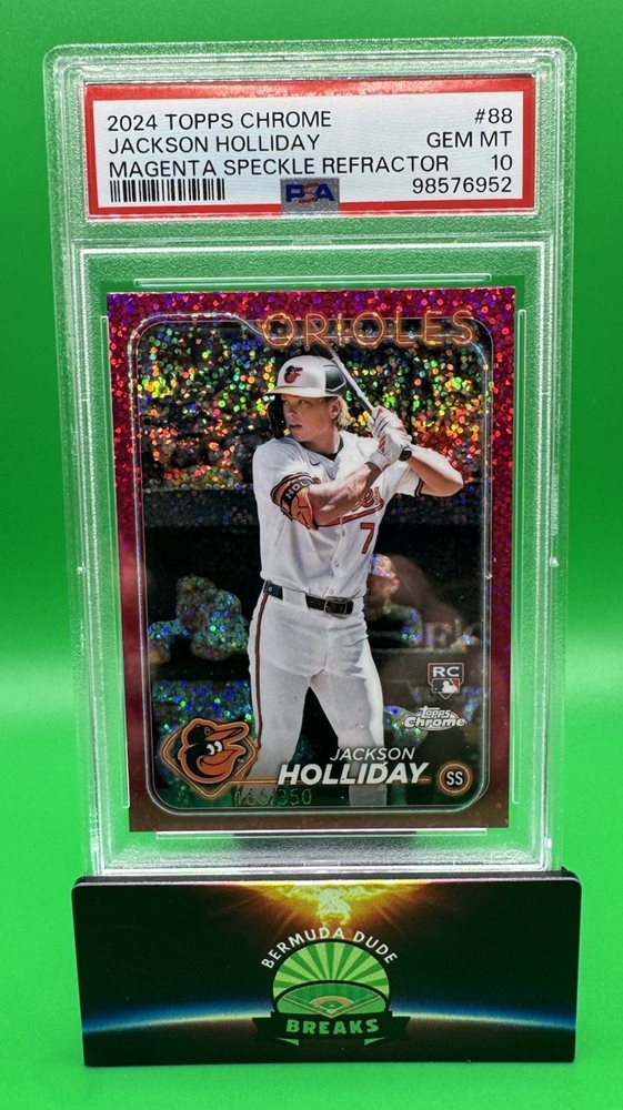 2024 Topps Chrome-88 Jackson Holliday (RC) Magenta Speckle Refractor /350 PSA 10