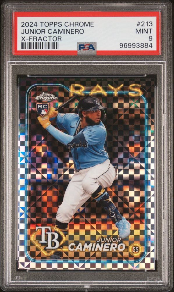 2024 TOPPS CHROME X-FRACTOR #213 JUNIOR CAMINERO ROOKIE RC PSA 9