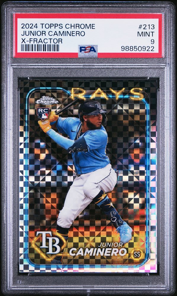 2024 TOPPS CHROME X-FRACTOR #213 JUNIOR CAMINERO ROOKIE RC PSA 9