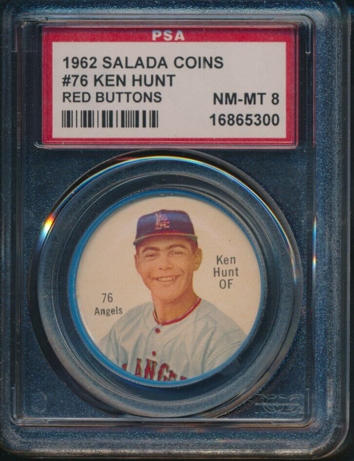 1962 Salada - Junket Coins Ken Hunt RED BUTTONS #76 PSA 8 ANGELS NM-MT SET BREAK