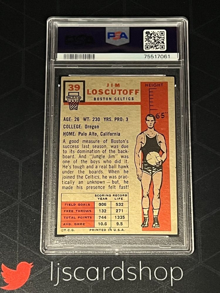 1957 Topps Jim Loscutoff Rookie RC #39 PSA 4 VG-EX J1