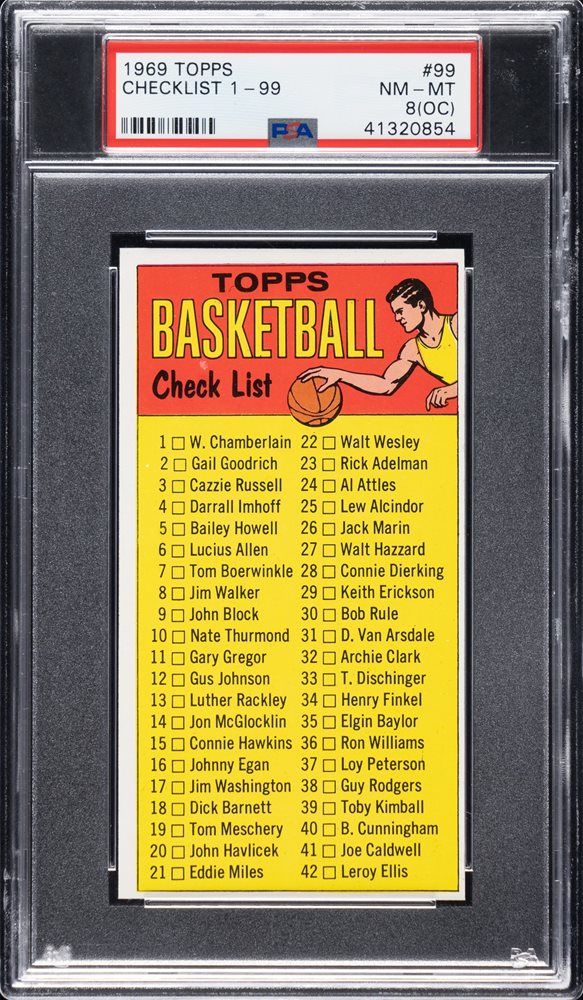 Lot # 2528: 1969-1970 Topps Basketball #99 Checklist PSA NM-MT 8 (OC)