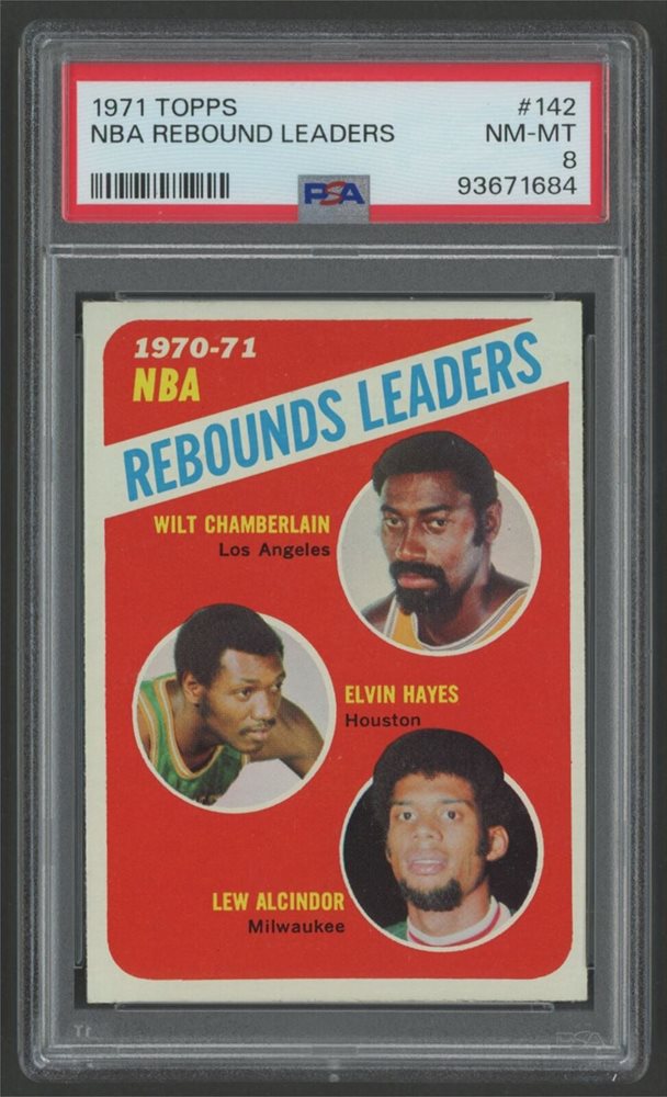1971-72 Topps Wil Chamberlain/Elvin Hayes/Lew Alcindor PSA 8 Rebounds Leaders