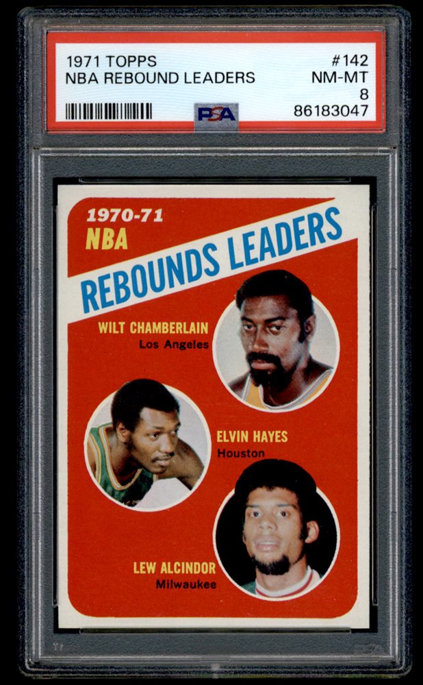 86183047 1971 Topps NBA Rebound Leaders Chamberlain Alcindor Hayes #142 PSA 8