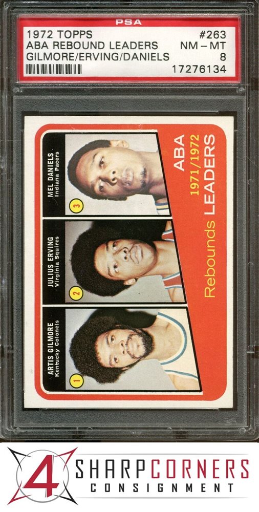 1972 TOPPS #263 ARTIS GILMORE-JULIUS ERVING PSA 8