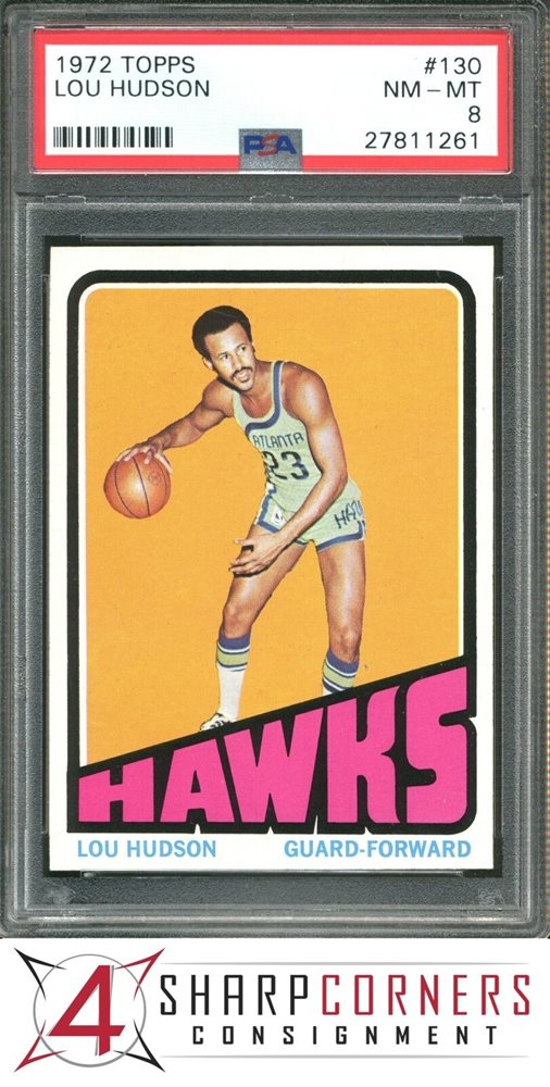1972 TOPPS #130 LOU HUDSON HAWKS HOF PSA 8