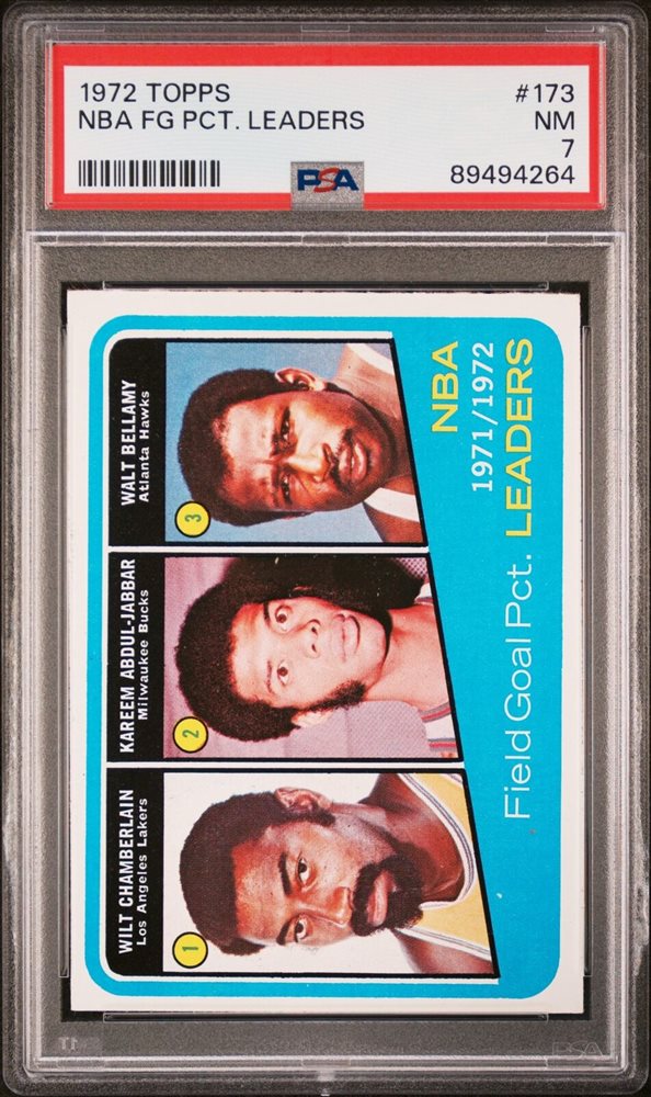 1972 Topps #173 NBA FG PCT Leaders Wilt Chamberlain/Kareem Abdul-Jabbar PSA 7